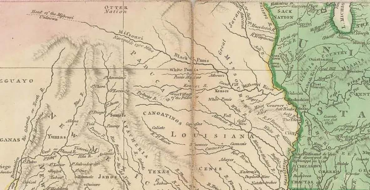 Arrowsmith must have also had extraordinary contacts within the Hudson’s Bay Company as he integrated the information collected by another important surveyor of the interior of Canada, Peter Fidler. This information was compiled in the early 1790s so it only begins to appear in the later versions of this Chart, as well as Arrowsmith’s map of North America in 1802. This is yet another example of Arrowsmith’s ability to keep abreast of events in the world of exploration. Fidler’s reports also included the latest information on the region of the Upper Missouri River. It was for this reason that Arrowsmith’s map of North America was used by Lewis and Clark’s Expedition into the American West in 1805-6.