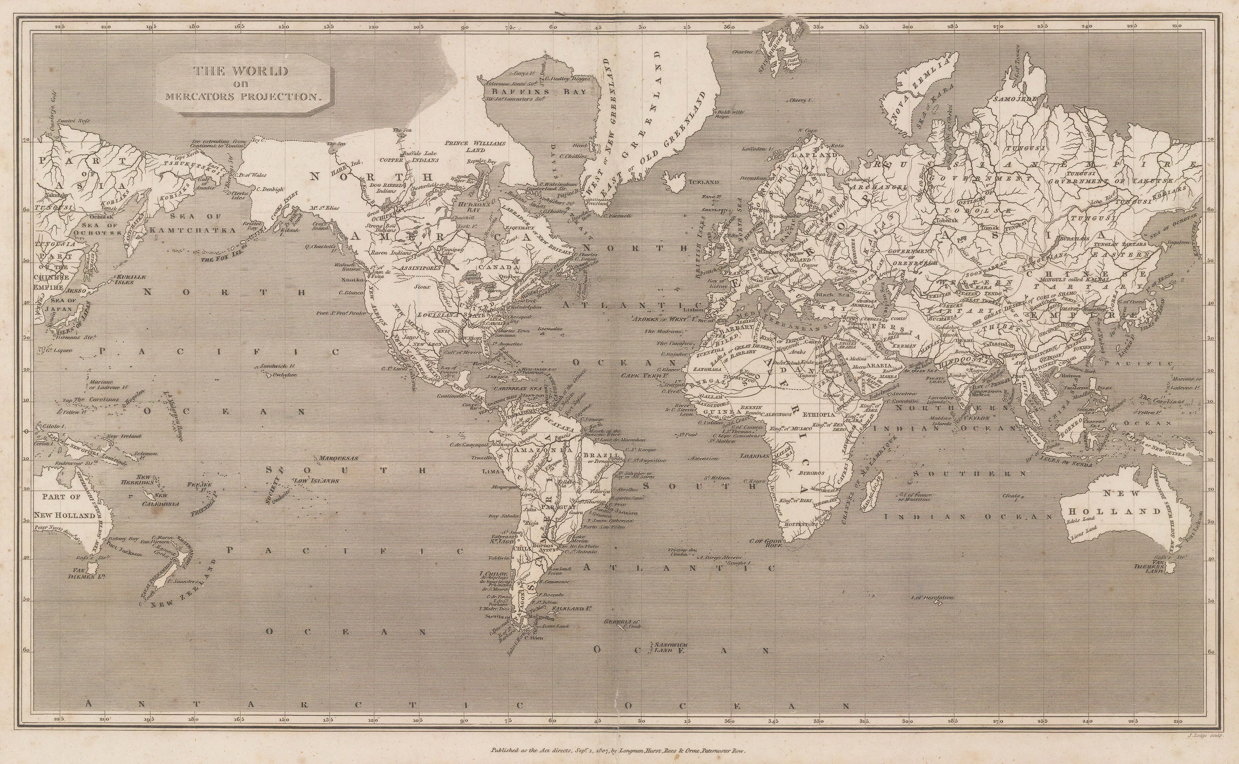 Arrowsmith (Aaron): “The World on Mercator’s Projection” Published 1807, London [WLD4404]