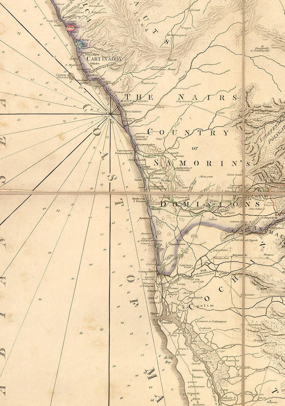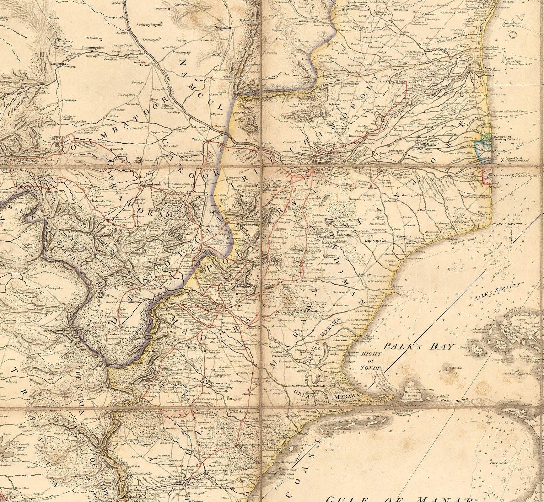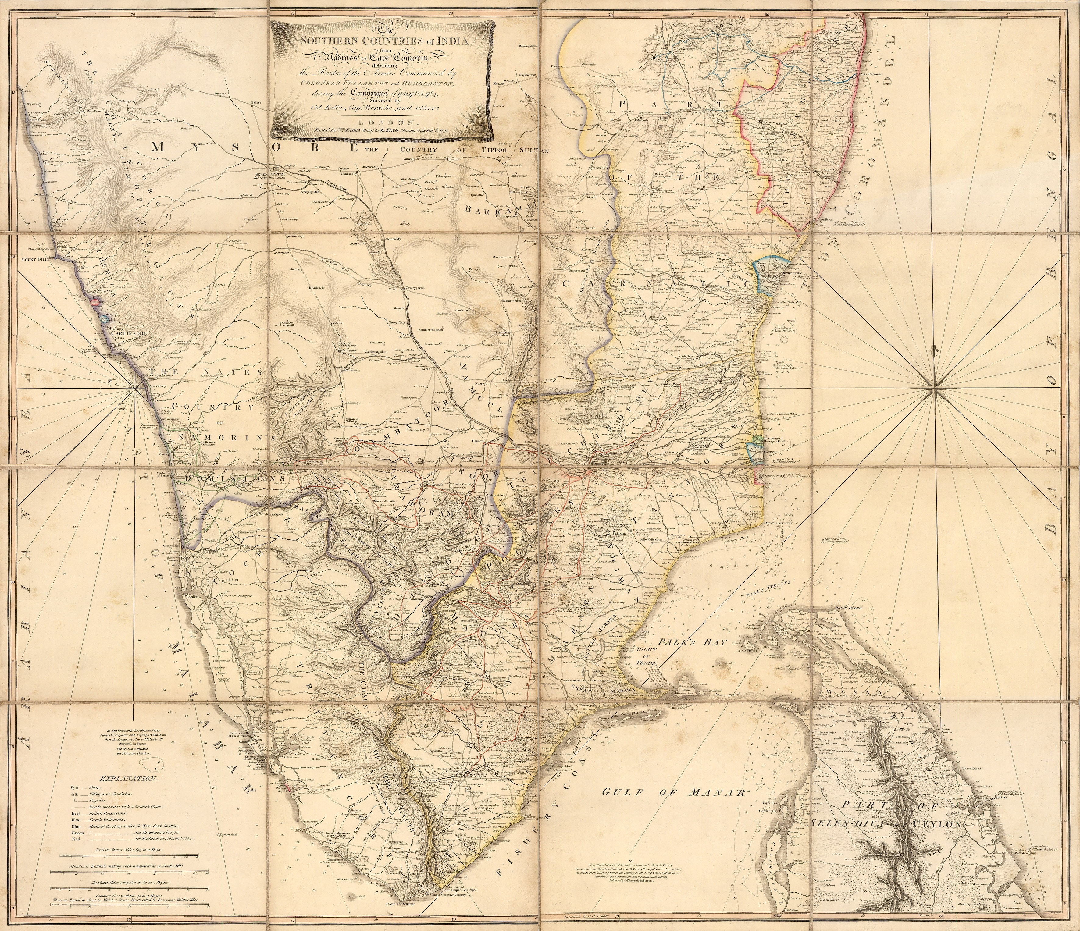 This particular entry into our blog is entitled “The Southern Countries of India from Madrass to Cape Comorin, describing the Routes of The Armies of Colonels Fullarton and Humberston during the Campaigns of 1782, 1783, & 1784. Surveyed by Col. Kelly, Capt. Wersebe and others.”