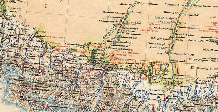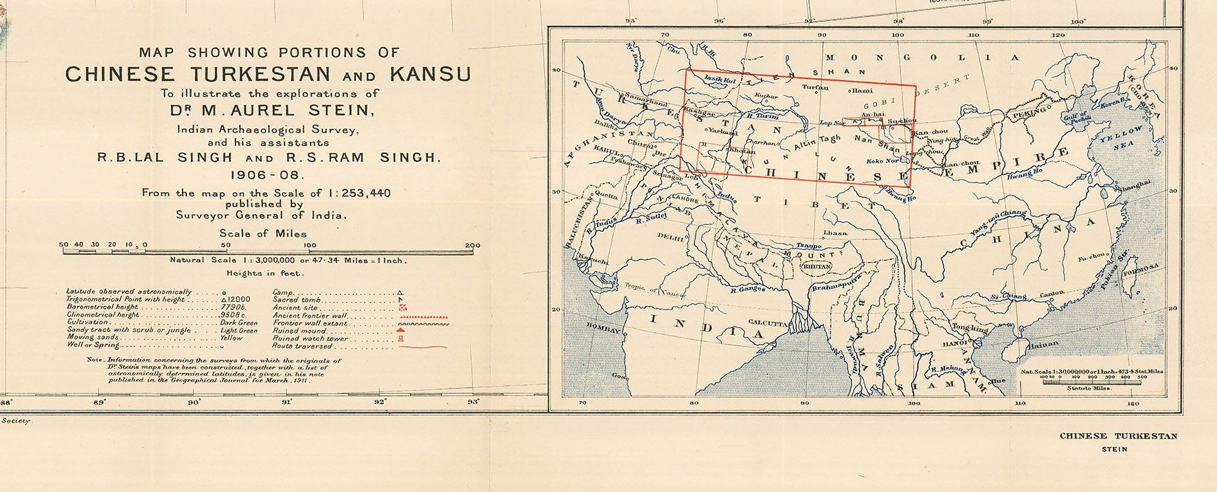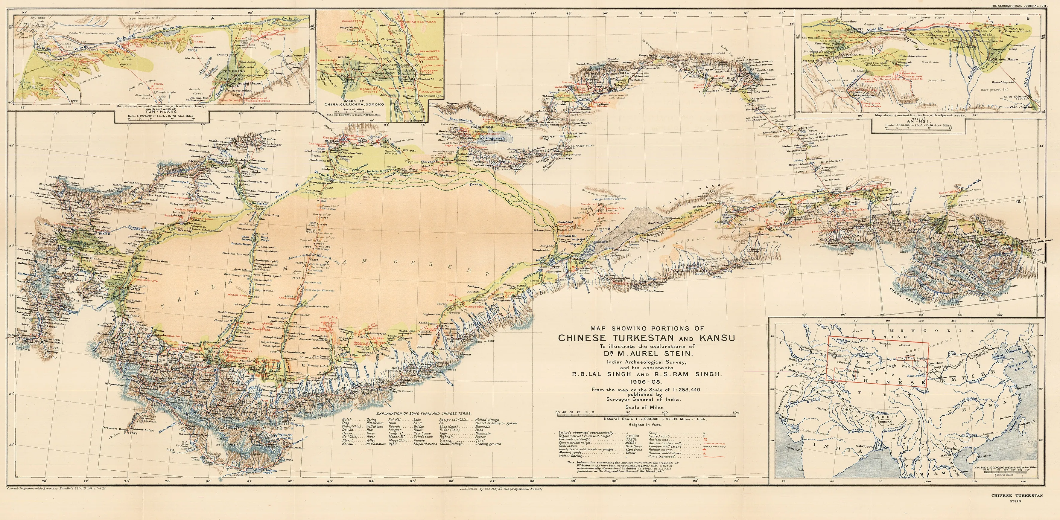 “Map Showing Portions of Chinese Turkestan and Kansu to Illustrate the Explorations of Dr. M. Aurel Stein.” Published for the Royal Geographical Society, 1911.