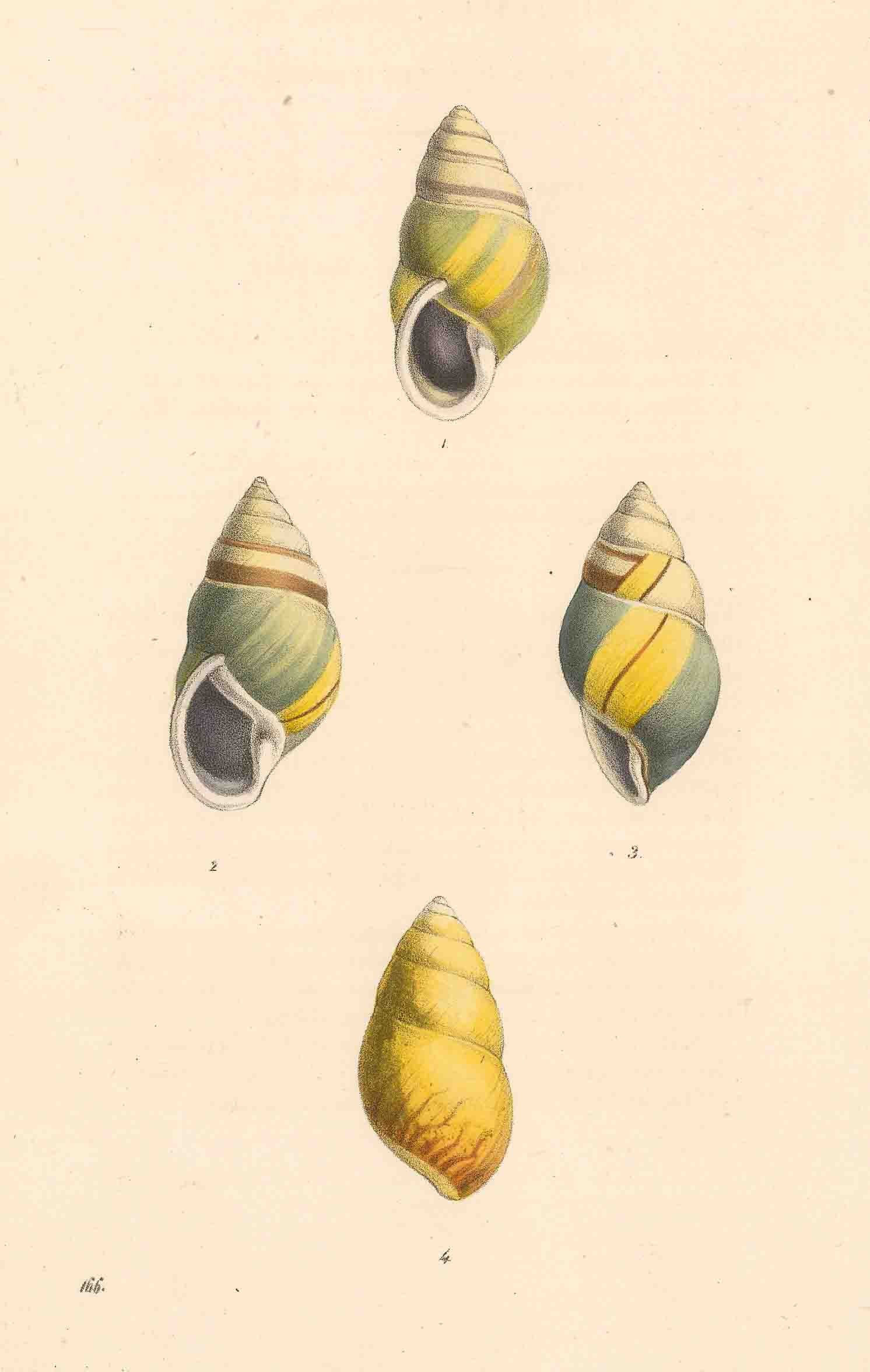 William Swainson. An original hand coloured antique steel-engraving of Bullimuis citrinus shells. 1833. [NATHISp7249]