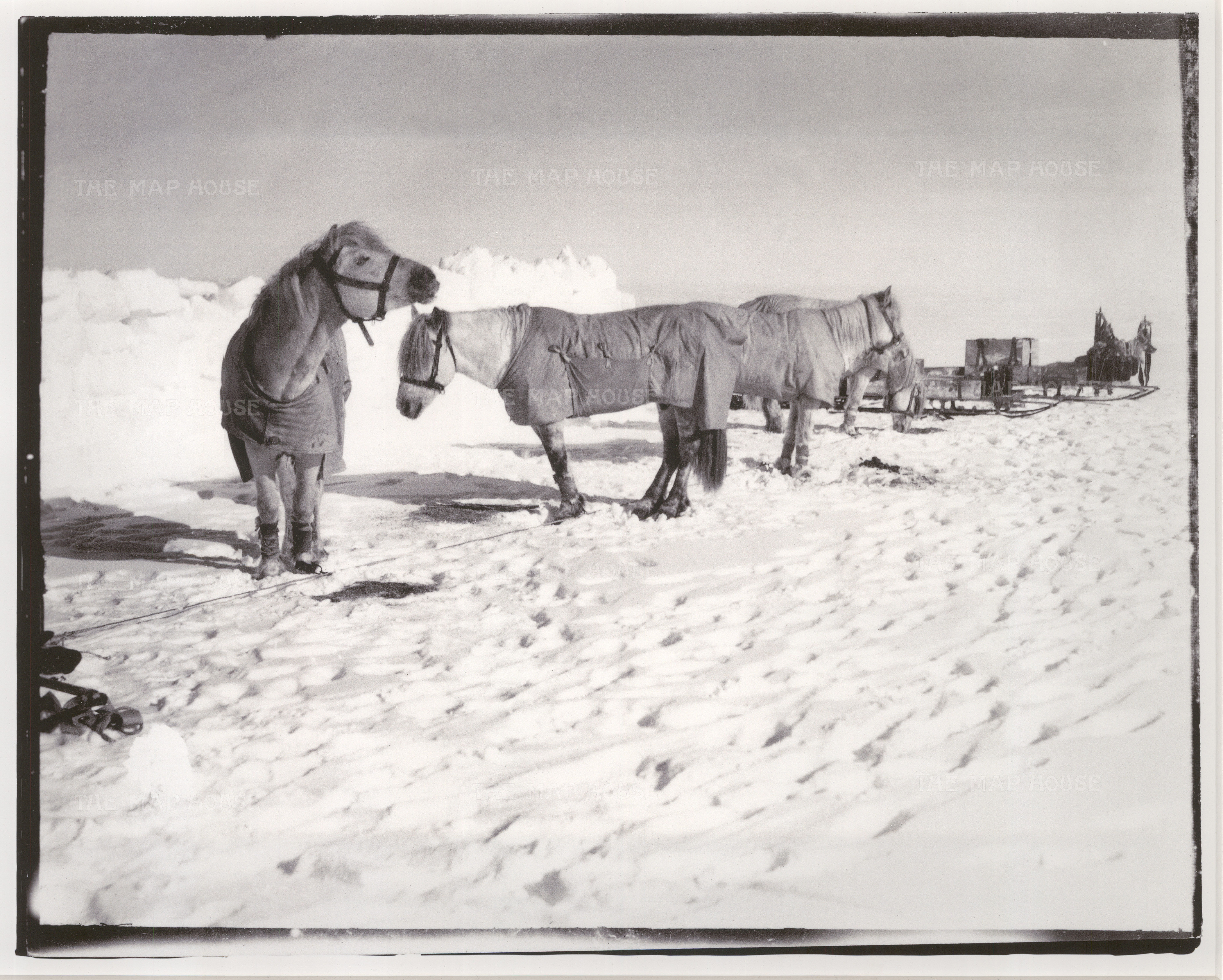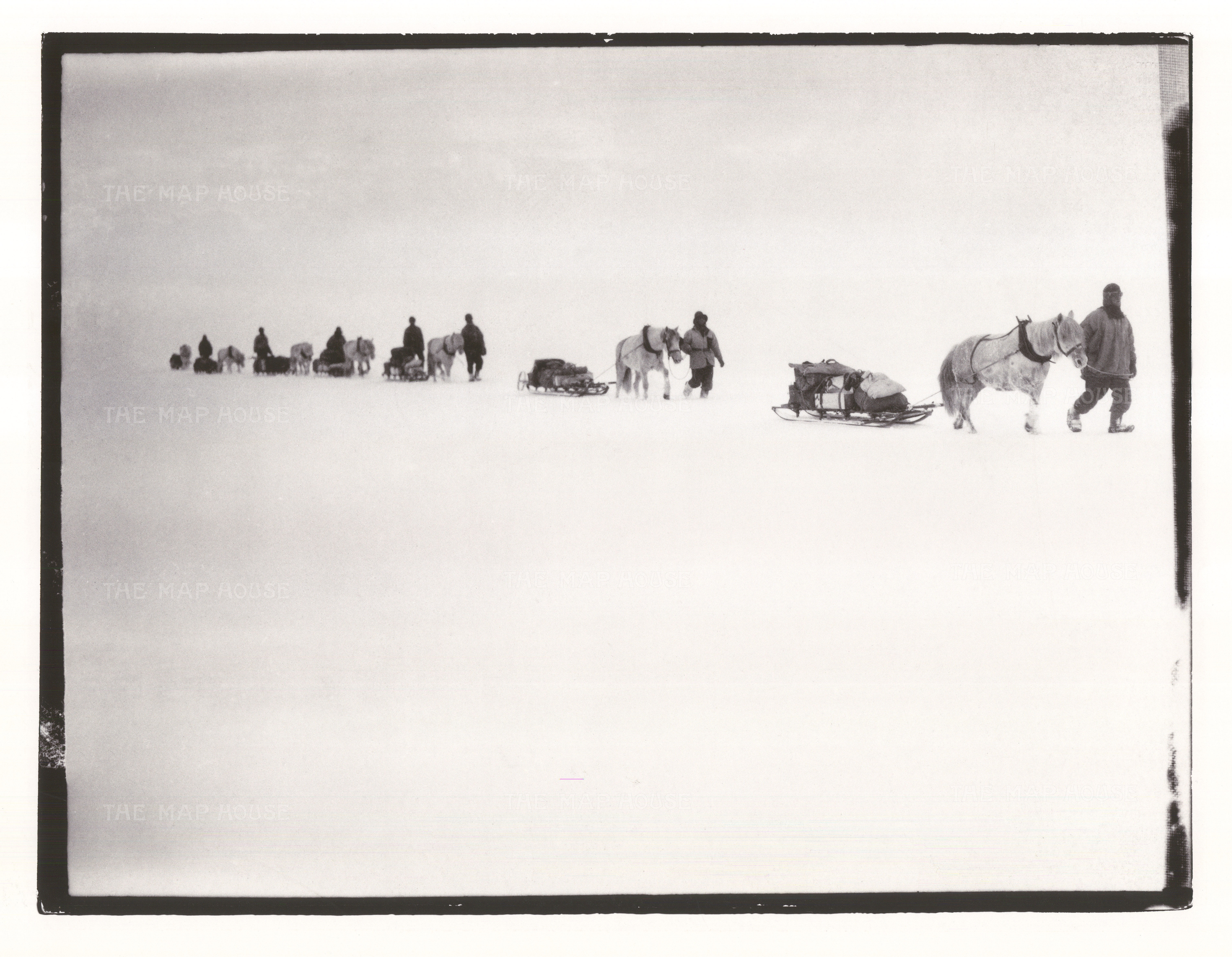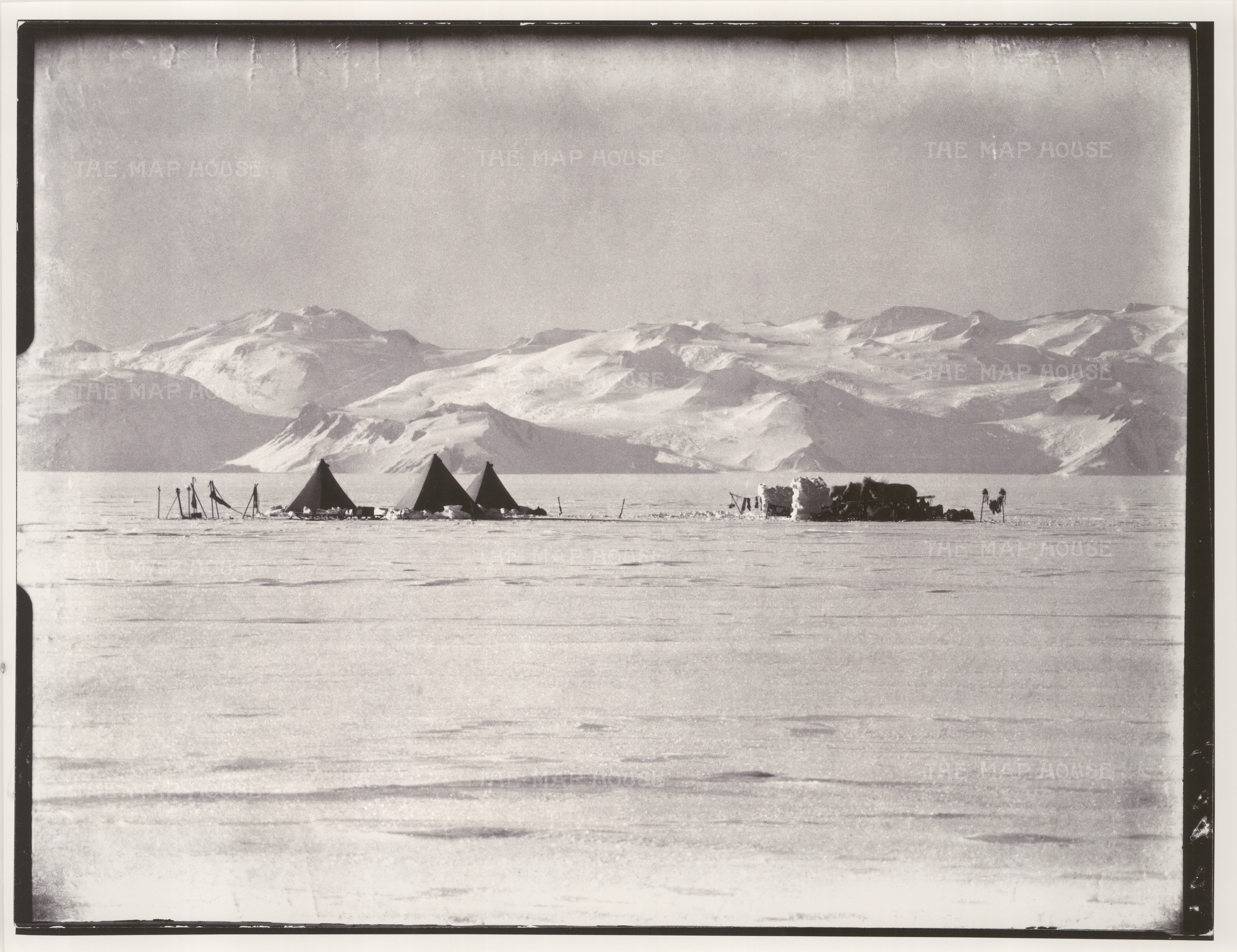 These magnificent images illustrating The Terra Nova Expedition are taken from photographs developed from the original glass plates taken by Scott. They are just a selection of the 109 photographs Scott took on the journey. After their return to the United Kingdom in 1913, there was confusion over copyright and ownership, and for many years they were lost. Eventually and nearly one hundred years later, the remaining negatives and photographs appeared in a New York auction house in the early 21st Century where they were purchased by a private collector.