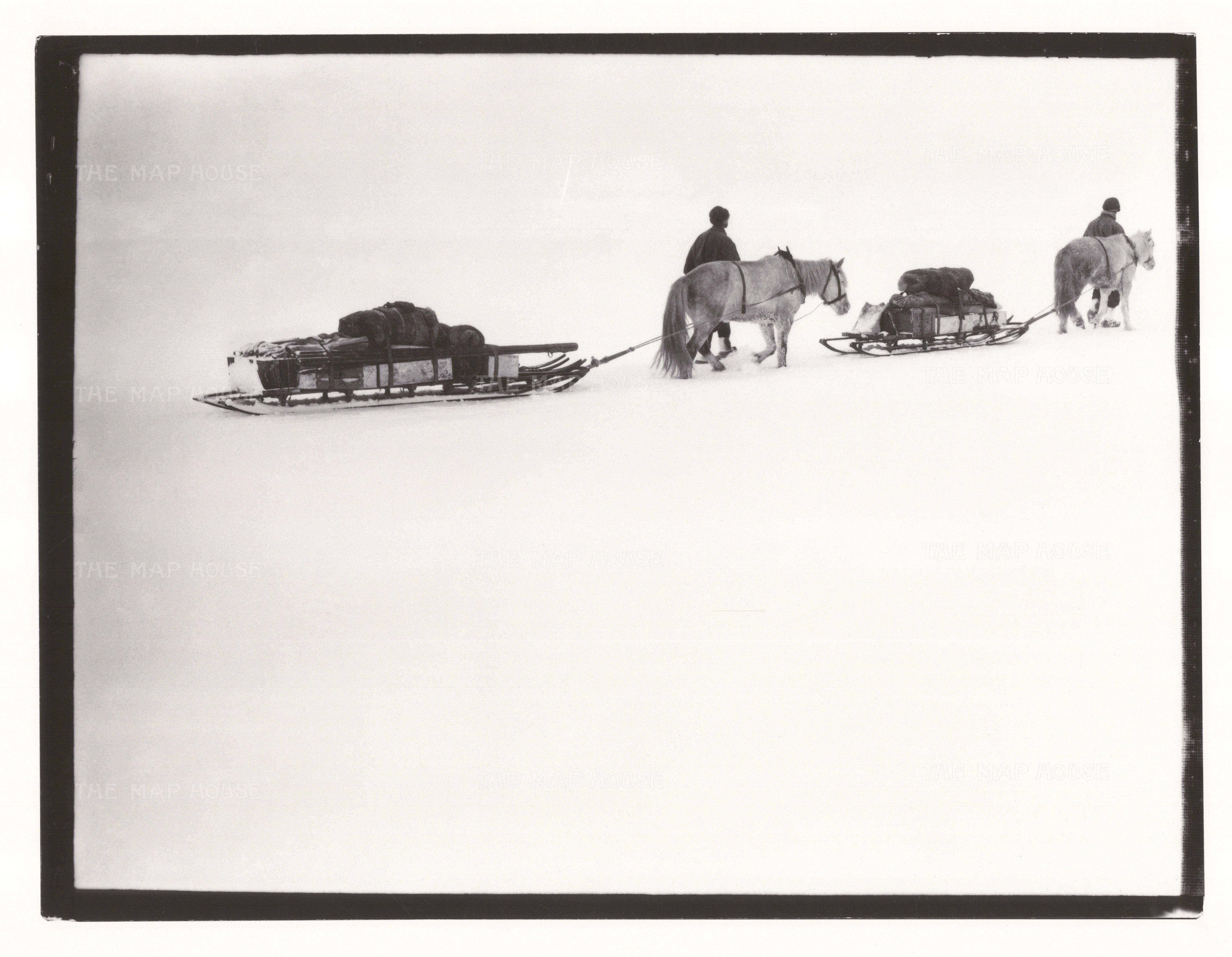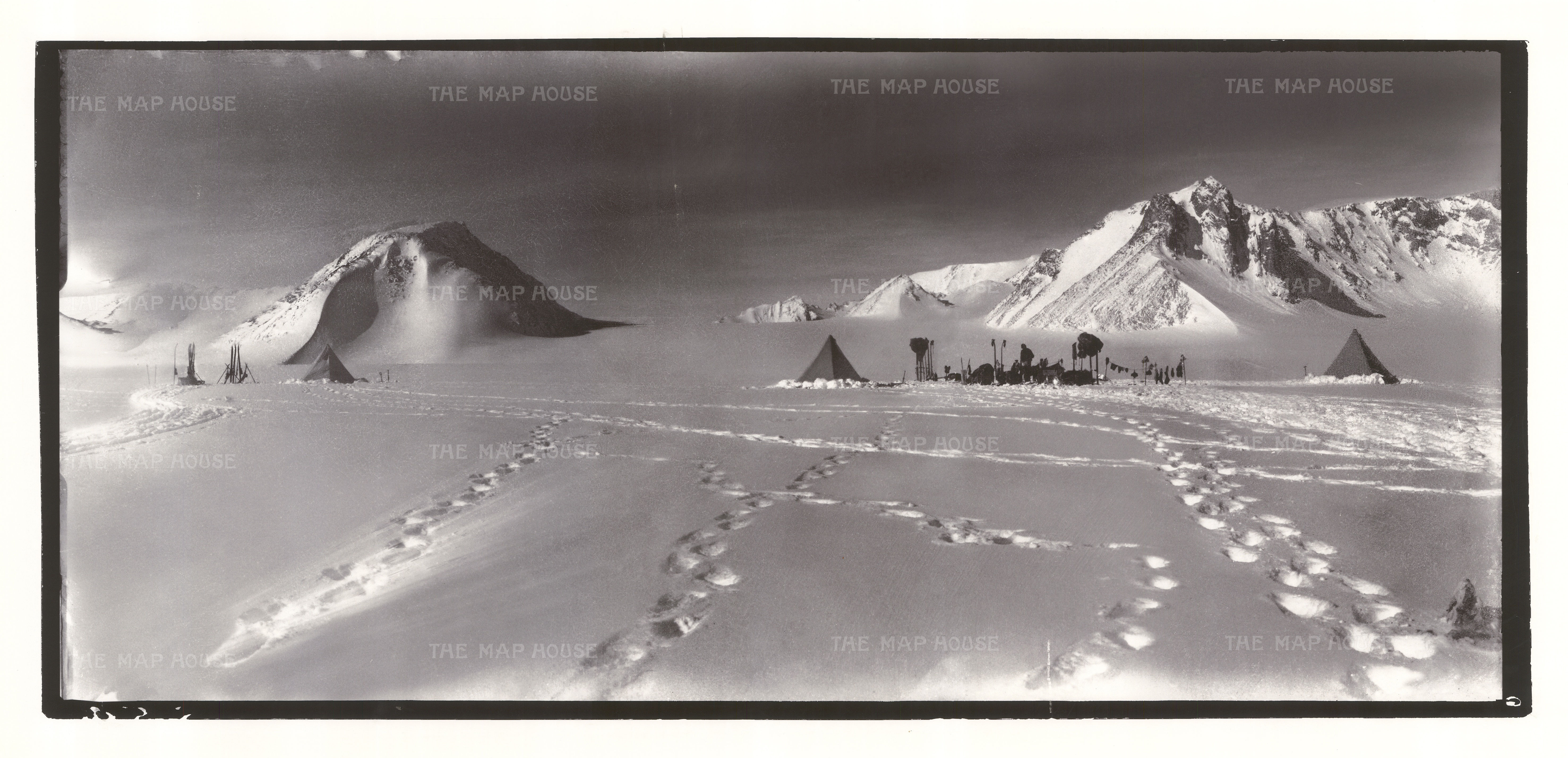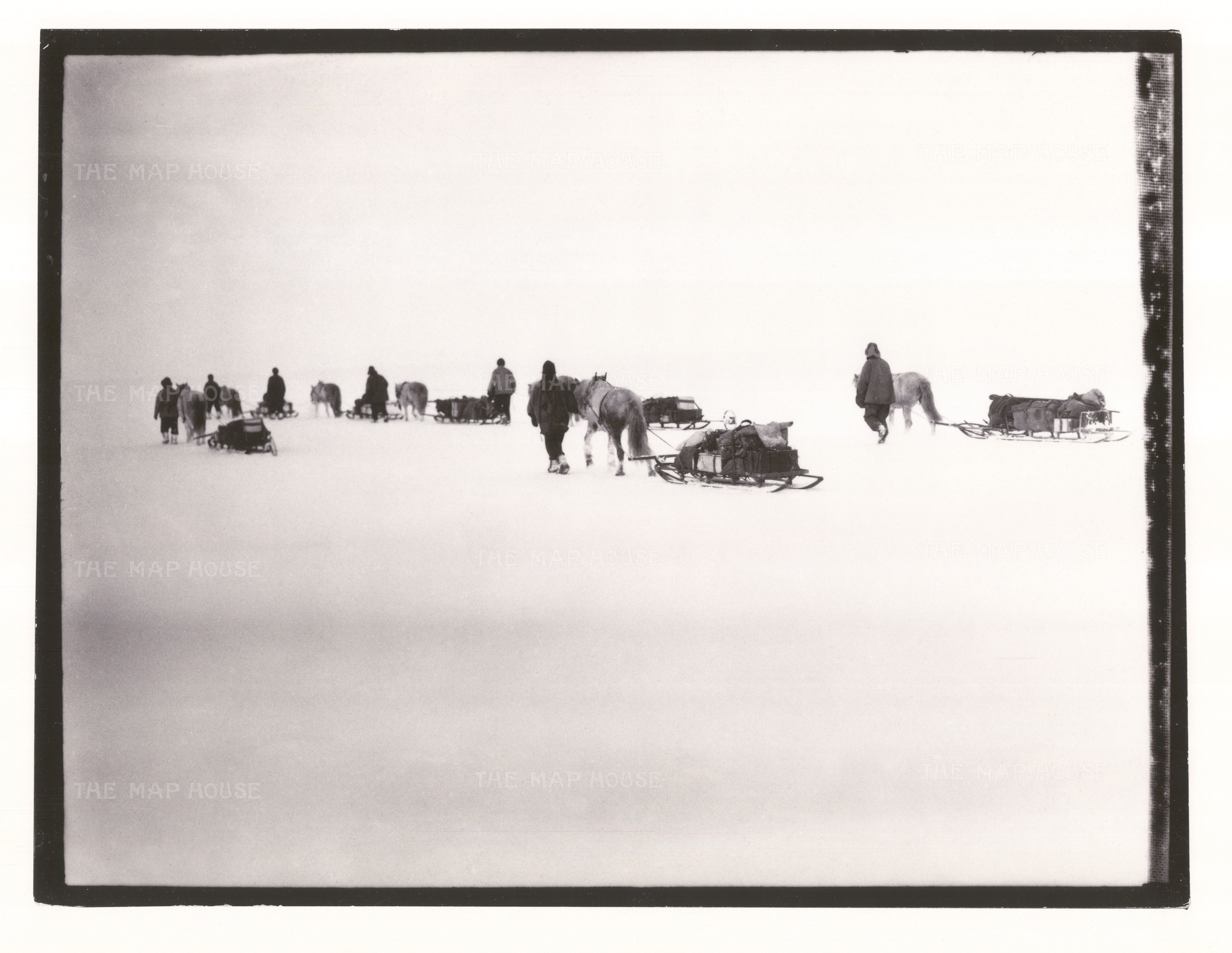 These magnificent images illustrating The Terra Nova Expedition are taken from photographs developed from the original glass plates taken by Scott. They are just a selection of the 109 photographs Scott took on the journey. After their return to the United Kingdom in 1913, there was confusion over copyright and ownership, and for many years they were lost. Eventually and nearly one hundred years later, the remaining negatives and photographs appeared in a New York auction house in the early 21st Century where they were purchased by a private collector.