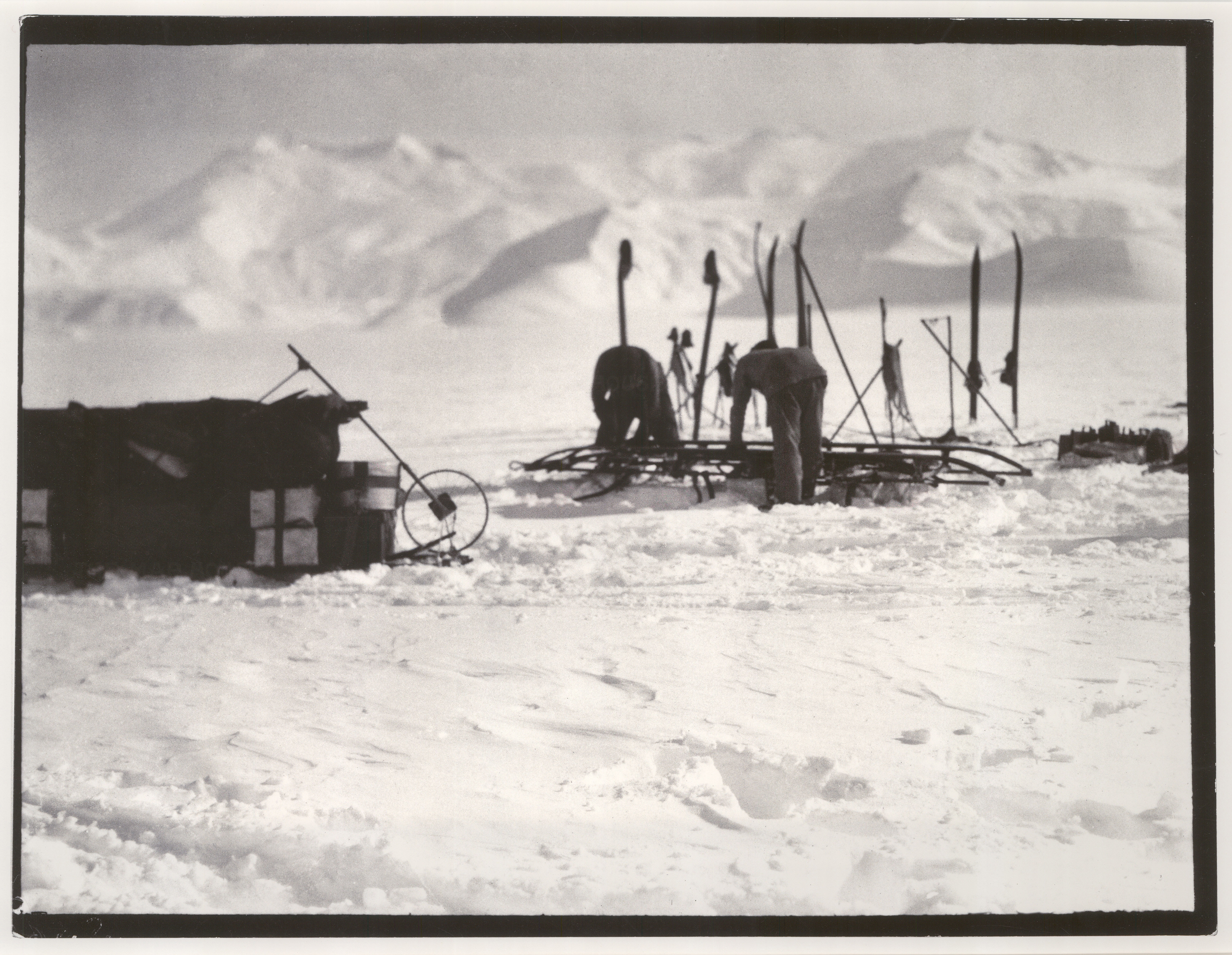 S67: Foundering in soft snow: probably Keohane and Crean waiting to depart, Beardmore Glacier, 13 December 1911