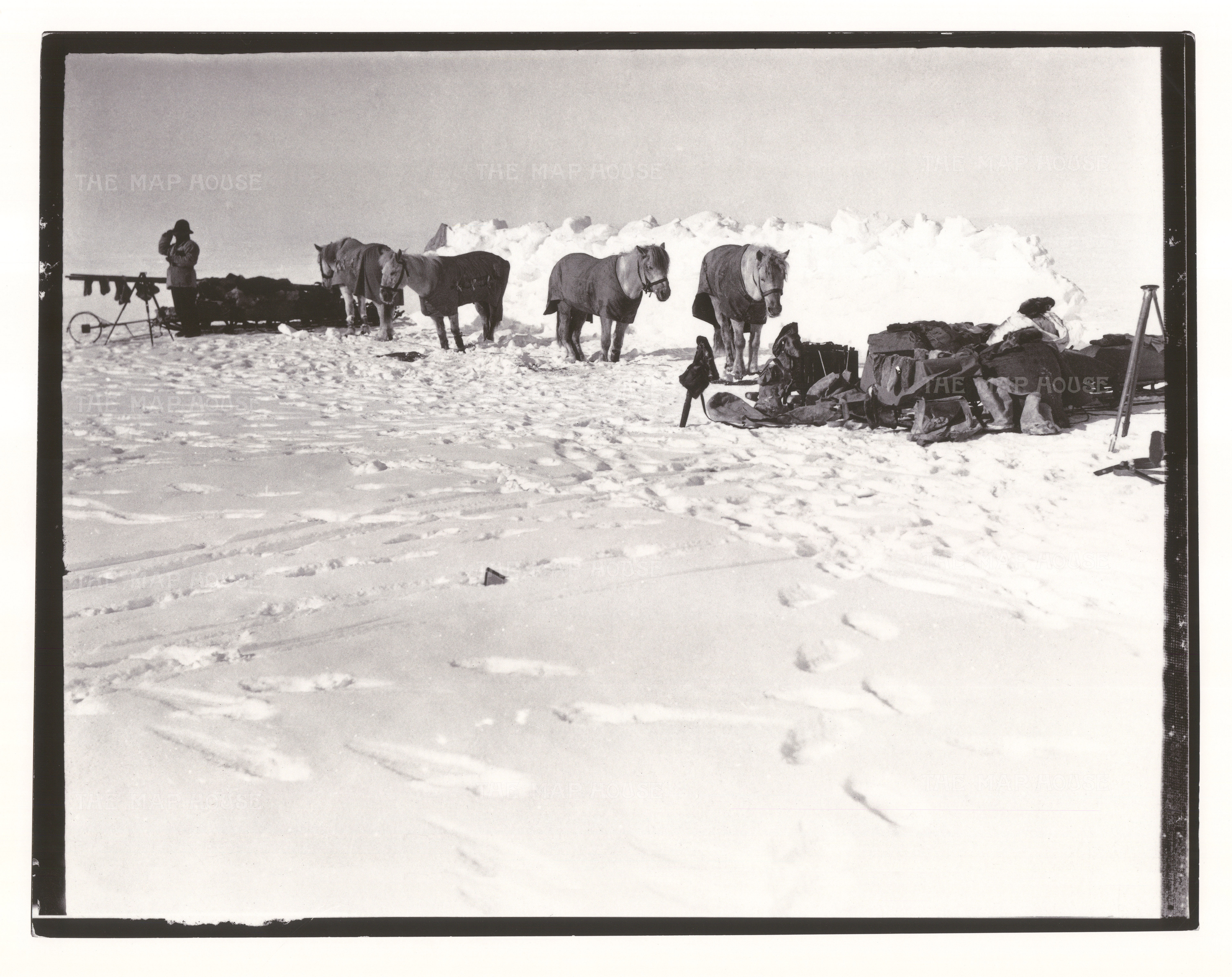 The party was made up of Antarctic veterans, British Navy seamen and a plethora of scientists, including Dr. Edward Wilson, who was a close friend of Scott’s and a talented artist. Also joining them on the first leg of their epic journey was pioneering photographer and filmmaker Herbert Ponting. Ponting was invited by Scott with the specific aim of documenting the entire trip – however Ponting was told he was too old to attempt this expedition despite being in his early forties and nearly the same age as Captain Scott.